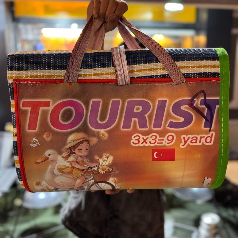 حصیر مسافرتی پلاستیکی 6 نفره یه تیکه دارای دوردوزی به صورت کیف قابل حمل