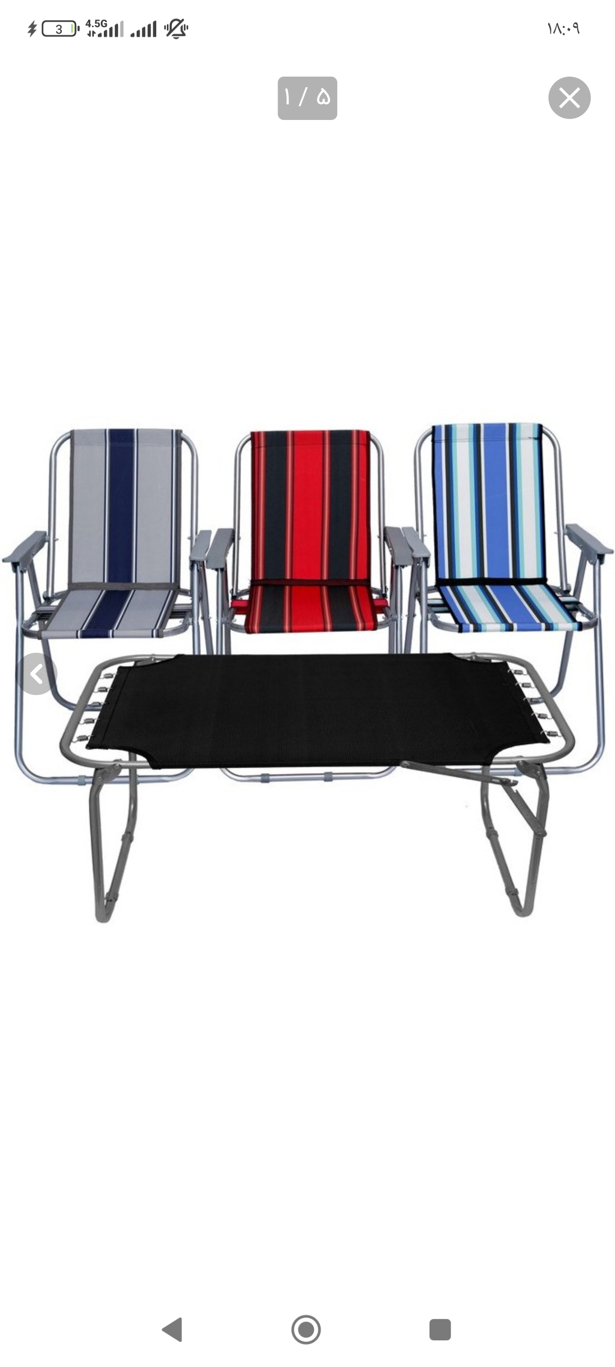 ست چهار نفره صندلی ساحلی تاشو 9 فنر و میز مسافرتی تاشو(پس کرایه)