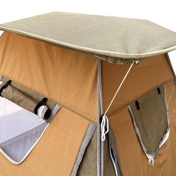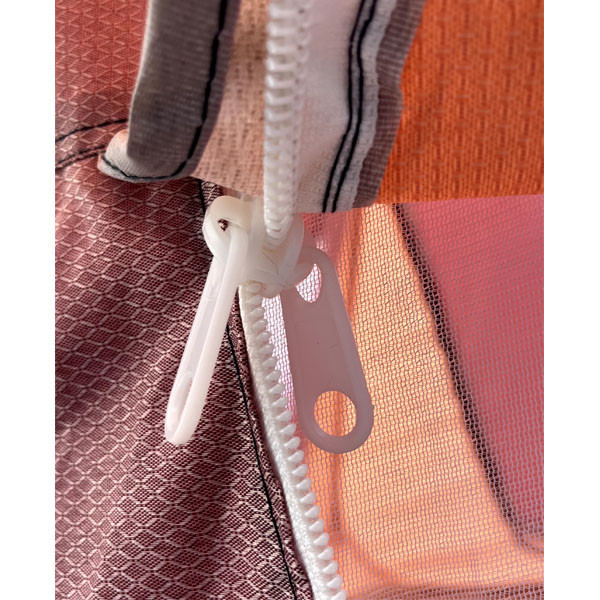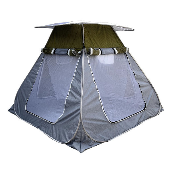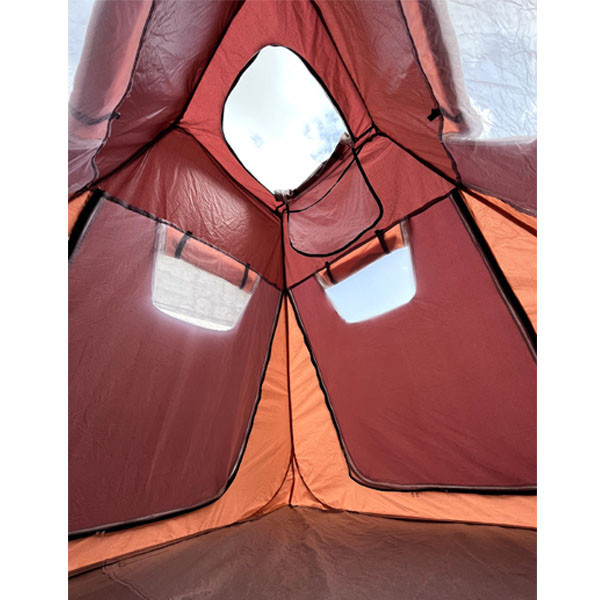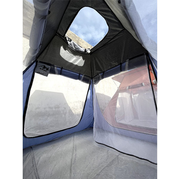 چادر مسافرتی مدل ریپس 360 درجه ، تولید شده از جنس برنو ضدآب هست. این محصول دارای چهار درب بزرگ توری دار هست ، که همین باعث میشه شما به عنوان پشه بند هم بتونید از این محصول استفاده کنید. تمام توری ها توسط زیپ باز و بست می شوند. زیپ های درب دو سر زیپ هست و هم از داخل هم از بیرون قابل استفاده هست. روی درب ها چهار پنجره کوچک هم طراحی شده. در قسمت سقف هم یک پنجره توری دار کار شده است. دوخت چادر دولایه هست یعنی پارچه تا شده و از رو دوخت رفته که همین در مقابل رطوبت نفوذناپذیرش میکنه. این چادر داری کیف ست و همچنین سایبان ست هم جنس و همرنگ می باشد. ابعاد چادر 250x250 و ارتفاع 210 می باشد مناسب نشستن 8-10 نفر و برای خواب 4-5 نفر می باشد.