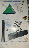 ویژگی محصول : داخل چادر دارای دو جیب بزرگ تعبیه شده برای تلفن و دیگر لوازم, دارای ۸ رشته قیطان مغزدار برای اتصال به زمین, دارای ۱۶ میخ مهار چادر و کف چادر به همراه کیف مخصوص