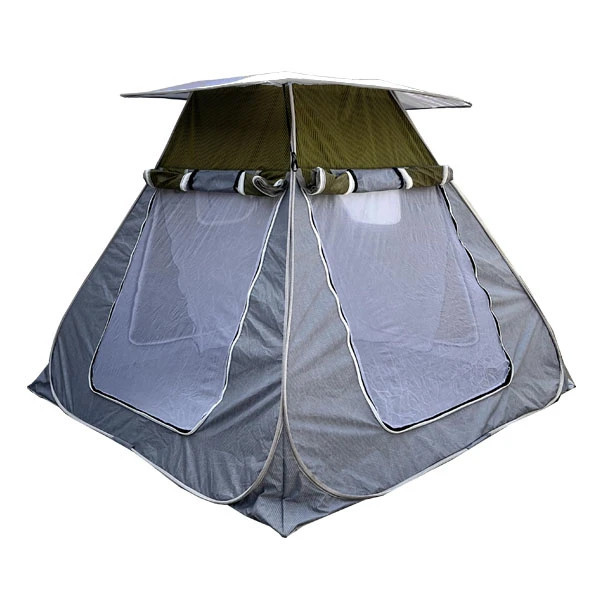 چادر مسافرتی 360 درجه ، تولید شده از جنس برنو ضدآب هست. این محصول دارای چهار درب بزرگ توری دار هست ، که همین باعث میشود شما به عنوان پشه بند هم بتونید از این محصول استفاده کنید. تمام توری ها توسط زیپ باز و بست می شوند. زیپ های درب دو سر زیپ هست و هم از داخل هم از بیرون قابل استفاده هست. روی درب ها چهار پنجره کوچک هم طراحی شده. در قسمت سقف هم یک پنجره توری دار کار شده است. دوخت چادر دولایه هست یعنی پارچه تا شده و از رو دوخت رفته که همین در مقابل رطوبت نفوذناپذیرش میکند. این چادر داری کیف ست و همچنین سایبان ست هم جنس و همرنگ می باشد. ابعاد چادر 250x250 و ارتفاع 210 می باشد مناسب نشستن 8-10 نفر و برای خواب 4-5 نفر می باشد.