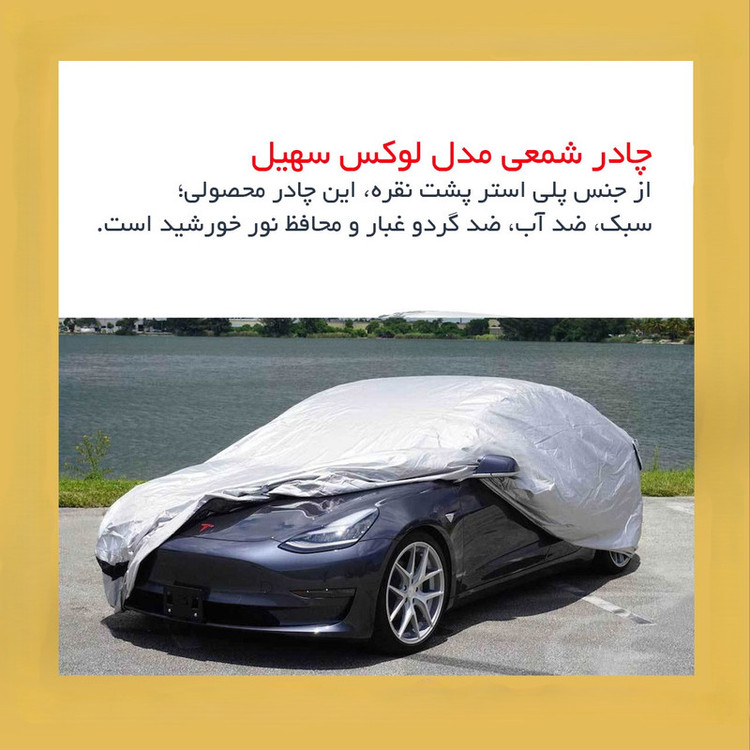 سایر توضیحات: - وزن فوق سبک - بازتاب دهنده نور خورشید - جلوگیری از داغ شدن بیش از اندازه داخل خودرو - دوخته شده از پارچه شمعی - غیرقابل نفوذ در برابر آب -محافظت خودرو از اشعه های مضر uv خورشید -جلوگیری از ایجاد آثار مخرب روی رنگ و بدنه خودرو