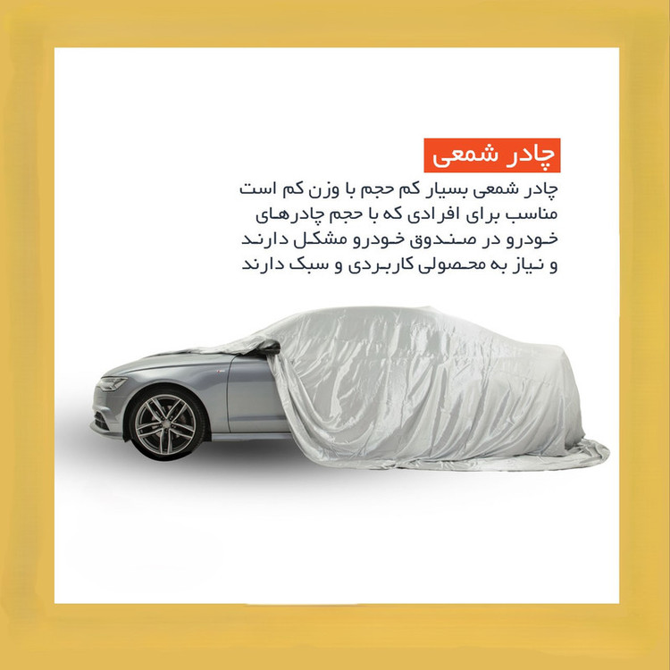 سایر توضیحات: - وزن فوق سبک - بازتاب دهنده نور خورشید - جلوگیری از داغ شدن بیش از اندازه داخل خودرو - دوخته شده از پارچه شمعی - غیرقابل نفوذ در برابر آب -محافظت خودرو از اشعه های مضر uv خورشید -جلوگیری از ایجاد آثار مخرب روی رنگ و بدنه خودرو