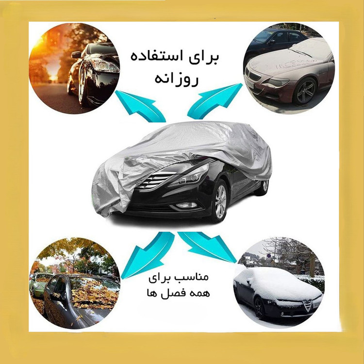 سایر توضیحات: - وزن فوق سبک - بازتاب دهنده نور خورشید - جلوگیری از داغ شدن بیش از اندازه داخل خودرو - دوخته شده از پارچه شمعی - غیرقابل نفوذ در برابر آب -محافظت خودرو از اشعه های مضر uv خورشید -جلوگیری از ایجاد آثار مخرب روی رنگ و بدنه خودرو