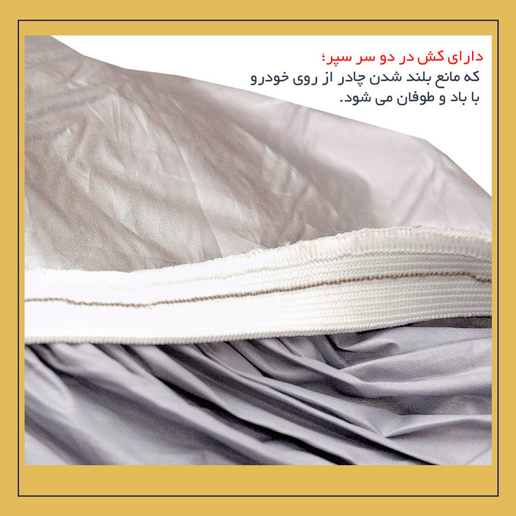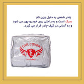 سایر توضیحات: - وزن فوق سبک - بازتاب دهنده نور خورشید - جلوگیری از داغ شدن بیش از اندازه داخل خودرو - دوخته شده از پارچه شمعی - غیرقابل نفوذ در برابر آب -محافظت خودرو از اشعه های مضر uv خورشید -جلوگیری از ایجاد آثار مخرب روی رنگ و بدنه خودرو