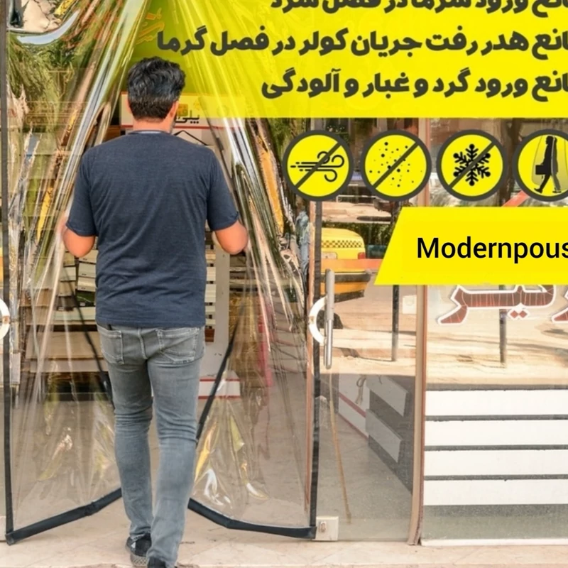 استفاده از درب های پلاستیکی /طلقی (مدرن پوش) برای جلوگیری از ورود سرما و حتی گرما به داخل ساختمان میباشد و یکی دیگر از مزیت های این پرده مانع شدن از ورود حشرات موذی به داخل ساختمان و اتاق و یکی از بهترین روش ها برای رهایی دائم از شر این موجودات موذی و حتی بیماری زا می باشد. مزیت درب پلاستیکی/طلقی (مدرن پوش) این است که علاوه بر دارا بودن مگنت های مغناطیسی(آهن ربا) قوی به راحتی نصب شده و حتی در صورت عدم نیاز میتوانید این درب را از روی چارچوب نصب شده جدا کنید و هر زمان که نیاز شد مجددا به سادگی آن را نصب کنید.این محصول از جنس طلق شفاف بوده و نوار حاشیه آن به رنگ طوسی میباشد که به جذابیت پرده اضافه کرده است.دقت کنید که روی پکیج های جدید این محصول جعبه وجود دارد و روی جعبه ادرس سایت و نام مدرن پوش مطابق تصاویر سایت درج شده است