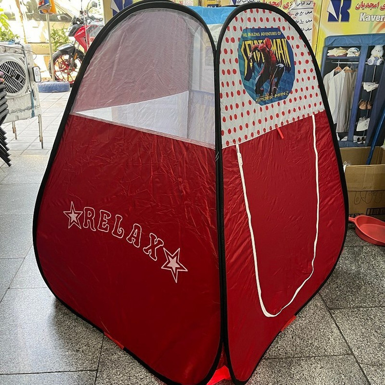 چادر بازی کودک مدل فنری تاشو طرح اسپایدرمن ( مردعنکبوتی ) رنگ قرمز توری دوزی شده کد2