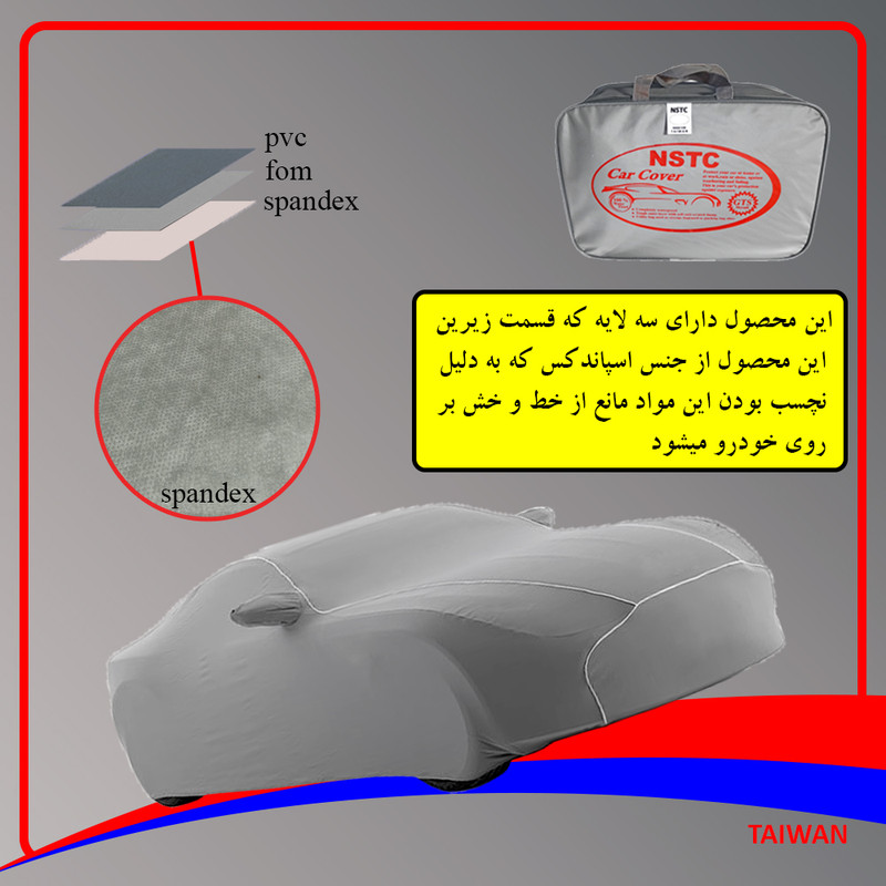 - دارای آستر پنبه جودون (اسپاندکس) که مانع از خش افتادن به بدنه خودرو میشود.