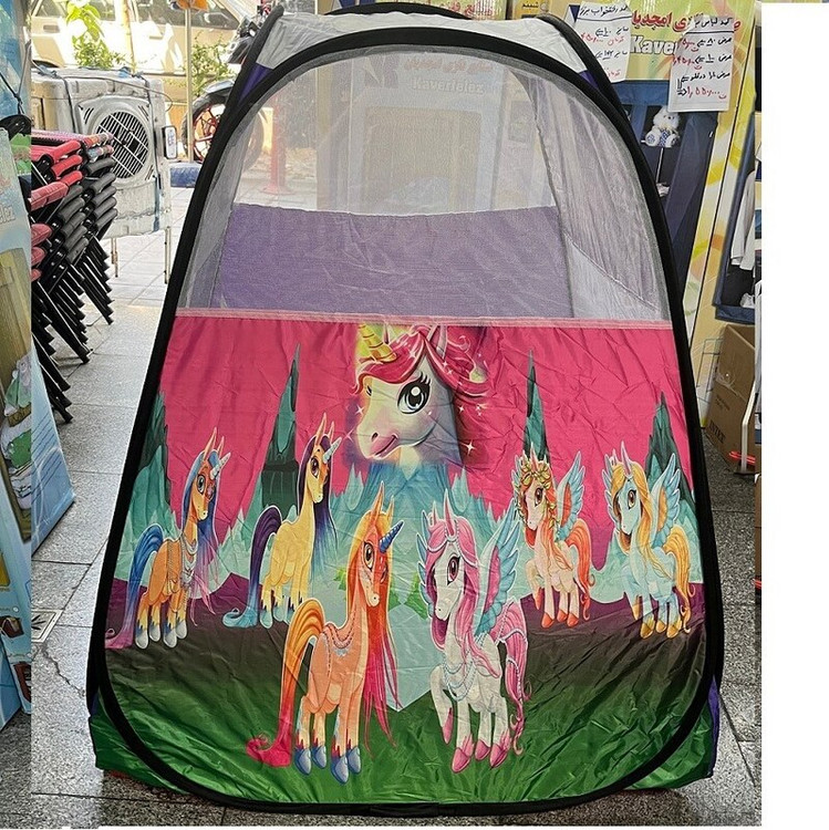 چادربازی چادر کودک خیمه کلبه تاشو طرح یونی کورن پونی اسب شاخدار سیسمونی کد1