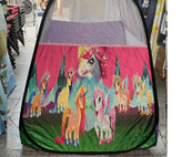 چادربازی چادر کودک خیمه کلبه تاشو فنری سیسمونی تولد کادو طرح یونی کورن پونی کد1