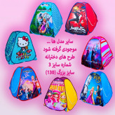 تذکر : کلیه چادر های کودک با طرح اصلی ثابت ارائه شده و طرح و رنگ قسمت درب چادر با توجه به وارداتی بودن آن ، متغیر میباشد.