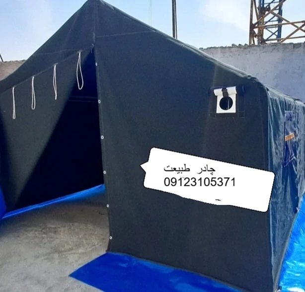 چادر مسافرتی خیمه 2 در 3 جنس برزنتی و لوله گاز همراه با جای لوله بخاری مدل 2
