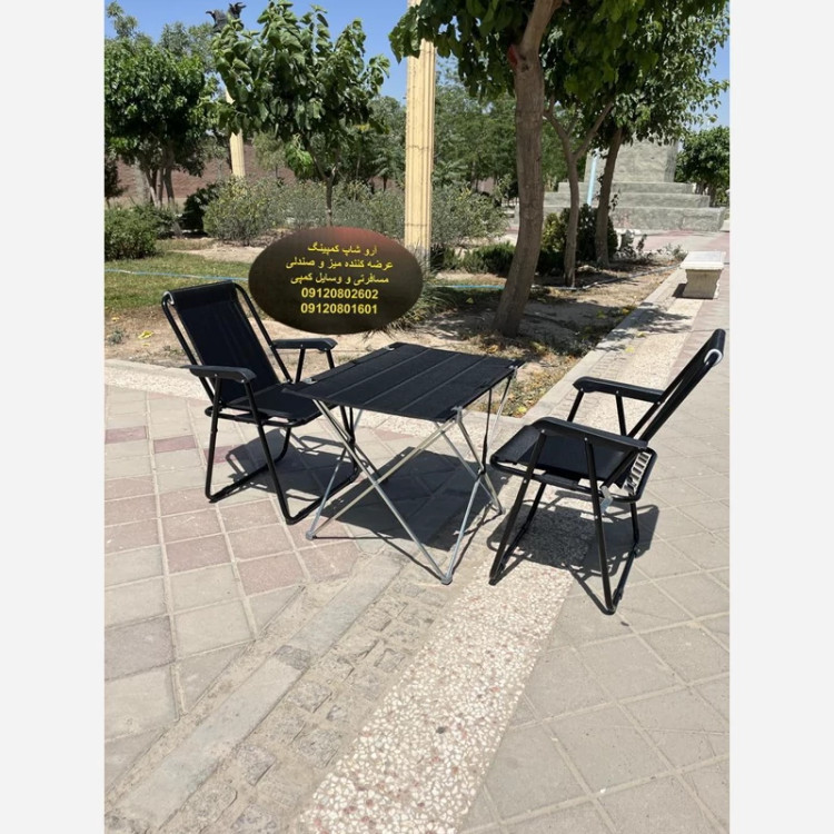 مشخصات : ست میزو صندلی تاشو دسته مبلی مسافرتی2 نفره دارای 7 فنر و فوم دار متریال ها: پارچه سومیت، فلزضد زنگ , فوم و تسمه ی تقویت کننده