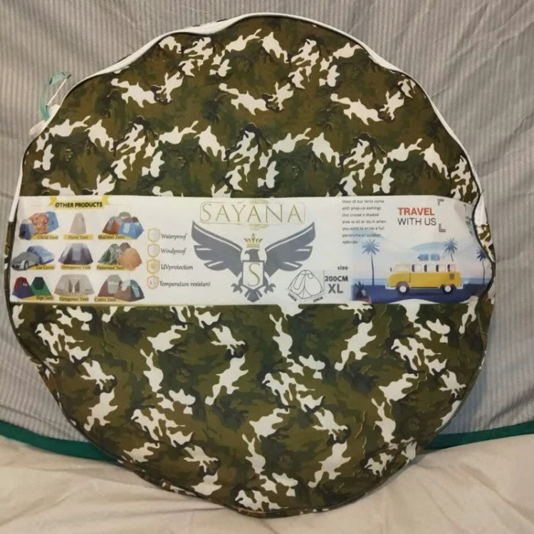 چادر مسافرتی جنس خوب طرحدار ارتشی و رنجر کف ضخیم تفلون و کیف ست چادر ابعاد 290*290×200 قطر کیف 77 سانت وزن 13000گرم دارای 8 گیره نگهدارنده دارای جیب و بند آویز داخلی دارای2 پنجره و درب زیپ شماره 10