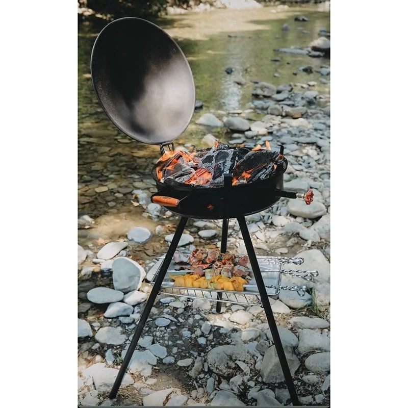 توضیحات تنور سفری ساج وک یک محصول کارآمد کاملا ایرانی برای آشپزی و پخت نان و استفاده از باربکیو در منزل طبیعت و سفرهای شماست. روکش تنور داخلی با قطر 47 سانتی متر از لعاب سرامیکی نسوز است که در برابر آتش مستقیم مقاومت دارد (روکش از رنگ نیست چون هرنوع رنگی میسوزد) و توری های گردش هوا همراه محصول وجود دارد. درب تنور برای پخت نان طراحی شده و شباهتی به باربیکیو های خارجی ندارد چون درب تنور صرفا برای پخت نان است و فاقد سوراخ و منفذ است و طراحی آن کاملا ایرانی و مناسب ذایقه پخت ایران است. با استفاده از محصول فوق می توانید از نان داغ تا کباب لذیذ و همچنین پیتزا را پخته و میل کنید. این محصول به صورت استفاده هیزمی به فروش می رسد ولی می توانید با خرید جداگانه شعله گازی، از تنور سفری ساج وک به صورت گازی در جاهایی که امکان برپایی آتش نیست مانند بالکن و منزل استفاده کنید. این محصول در یک کیف دسته دار همراه با توری گردش هوا، توری گریل دسته دار برای روی تنور و سه پایه کوتاه و بلند برای استفاده هنگام نشستن یا ایستادن عرضه می شود خدابنده لو