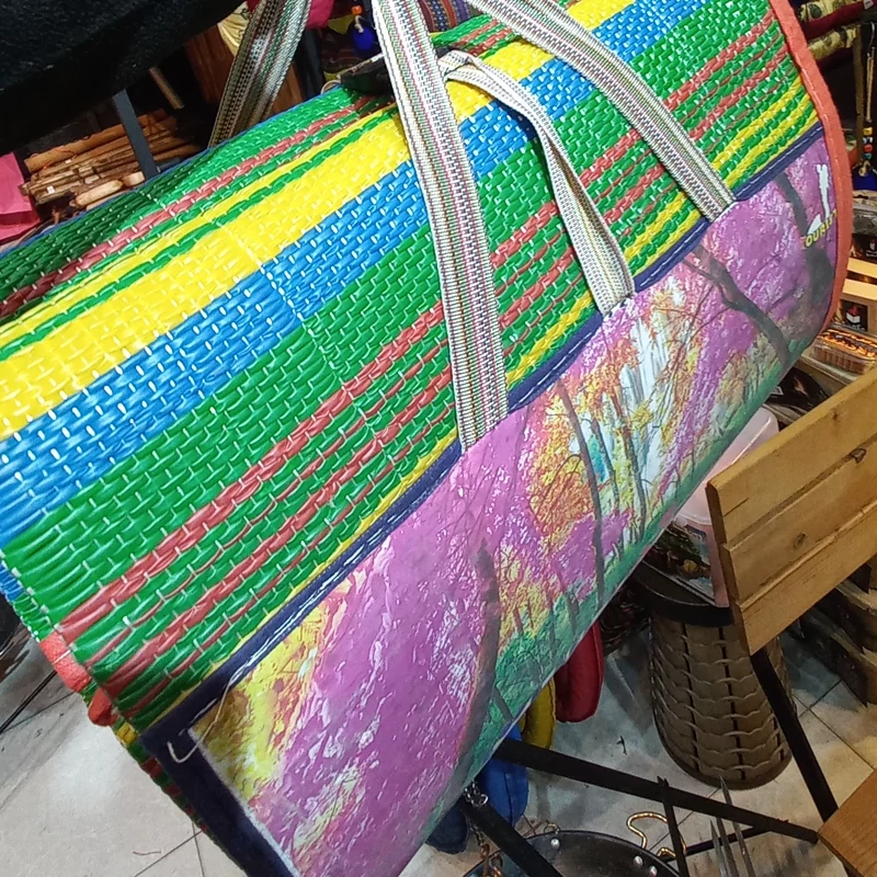 جنس حصیر وارداتی ترک دو لایه بافت دوردوز با اسپان باند کیف شو دارای دسته حمل و بندگیره وسط محکم کننده رنگبندی نماد سایز است