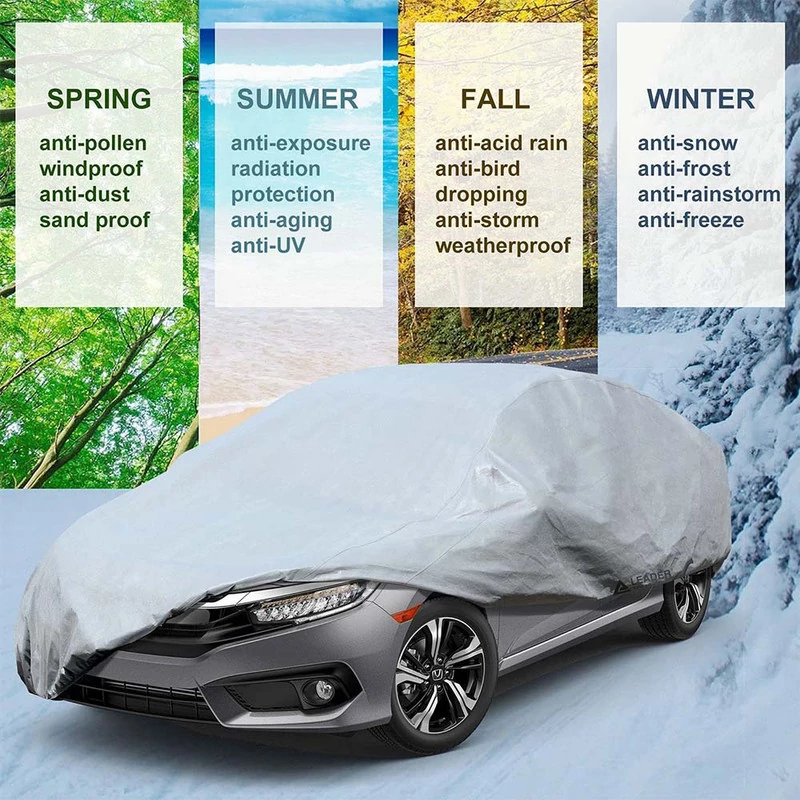 3- لایه بیرونی نانو ضدآب: لایه بیرونی این چادر از فناوری نانو بهره میبرد که آن را به طور 100 درصد ضدآب میسازد. حتی در بارانهای شدید و شرایط مرطوب، هیچ رطوبتی به بدنه خودرو نفوذ نخواهد کرد و خودروی شما همیشه خشک و سالم باقی میماند.