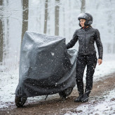 چادر ضدآب موتور سیکلت یک انتخاب حرفهای برای کسانی است که میخواهند موتورشان همیشه سالم، تمیز و بدون خطوخش باقی بماند. این چادر از پارچهای بسیار ضخیم و بادوام تولید شده که در برابر باران، آفتاب، گردوغبار و حتی شرایط سخت آبوهوایی بهخوبی مقاومت میکند. داخل چادر یک لایه کرک نرم و لطیف قرار دارد که از ایجاد هرگونه خطوخش روی بدنه و قطعات موتور جلوگیری میکند و همین موضوع آن را به گزینهای مطمئن برای موتورهای صفر کیلومتر و حساس تبدیل کرده است. طراحی این محصول با قواره بزرگ و استاندارد انجام شده تا موتور را بهصورت کامل پوشش دهد و امکان نفوذ آب یا گردوغبار را به حداقل برساند. این چادر کاملاً چهارفصل بوده و در تمامی ماههای سال عملکرد عالی ارائه میدهد. به همراه محصول، یک کیف مخصوص حمل نیز ارائه میشود تا بتوانید چادر را پس از جمعکردن، مرتب و تمیز نگهداری کنید. وزن تقریبی حدود ۳ کیلوگرم نشان میدهد که با یک چادر مقاوم، ضخیم و باکیفیت واقعی طرف هستید، اگر بهدنبال محافظی قدرتمند، بادوام و باکیفیت برای موتورتان هستید، این چادر ضدآب یکی از بهترین انتخابهاست.