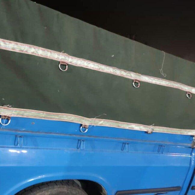 چادر برزنت نیسان 12 متری با احتساب لیفه عقب و جلو به همراه دم اسبی ( صلیب پشت) قلاب تاج و طناب و 4 ردیف حلقه