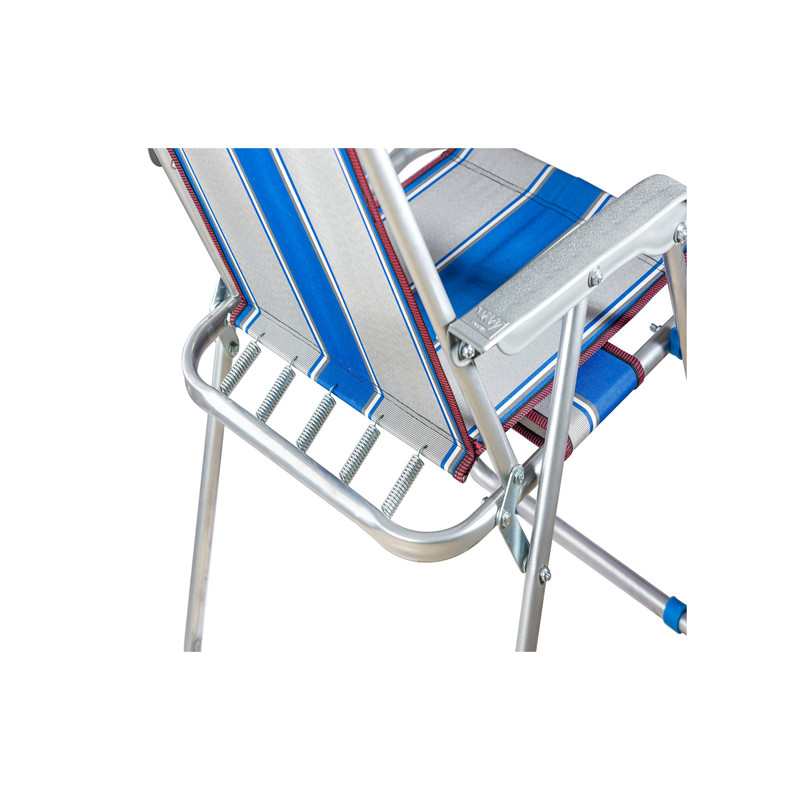 صندلی ساحلی ادریک مدل پنج فنر از یراق آلات 2 میلیمتری و فنر بلند ساخته شده است.دسته پلاستیکی این محصول از بهترین مواد اولیه پلیمری تولید شده و در مقابل گرما و سرما نرم و یا خشک نمی شود.پارچه استفاده شده گرماژ بالا بوده و تحمل وزن سنگین را نیز منجر می شود.