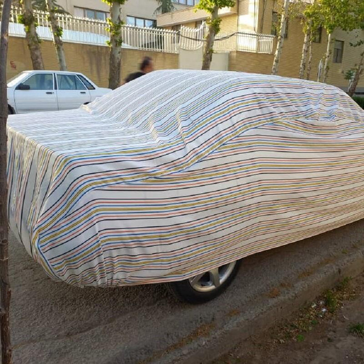 ایساتیس چادر: با توجه به درصد بالای نخ ( پنبه) و ضخامت خیلی خوب این چادر مقاومت آن در آفتاب خیلی خوب بوده و خودروی شما را از در برابر نورآفتاب و گرم شده بدنه حفظ میکند . این چادر به خوبی در مناطقی که گرمای آفتاب شدید است از آسیب خوردو جلوگیری میکند. این پارچه در ضخامت ها و وزن های مختلف تولید میشود که این محصول ضخیمترین و با کیفیت ترین آن میباشد از قدیم الایام این پارچه برای محافظت از بدنه خودرو در برابر آفتاب استفاده میشده و همچنان هم جز پارچه های پر مصرف و پر طرفدار برای این کار هست قسمت پایین آن کش قابل رگلاژ( قابل تنظیم ) و همچنین حلقه برای بستن طناب وجود دارد که در برابر بادهای شدید از روی خودرو جدا نمیشود ابعاد این چادر دقیقا مناسب برای خودرو شماست و به قول معروف فیت آن میشود لاستیکها را پوشش میدهد و در برابر آفتاب محافظت میکند جنس آن نرم ،ضد خش و محافظ رنگ خودرو هست در بعضی از شهر ها این چادر به عنوان پارچه برزنتی و در بعضی از شهر ها این پارچه به عنوان پارچه نخ پنبه شناخته میشود در این چادر درصد نخ و پنبه نسبت به پلی استر بسیار بالاست و همین امر به مقاوم آن در برابر آفتاب کمک میکند همچنین در برابر نور آفتاب گرم نمیشود این چادر در دو رنگ راه راه آبی و راه راه پرچمی تولید شده که در قسمت توضیحات میتوانید رنگ مورد نظر را انتخاب کنید