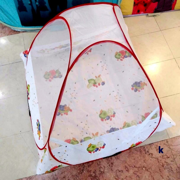 پشه بند کودک مناسب سن تولد تا ۵سالگی ،تورحریرریزبافت ،ابعادکف ۹0cm x ۹0cm ارتفاع ۱۰۰cm دارای فنرهای فولادی وقابل انعطاف ،جنس پارچه کف ازنخ ضدتعریق