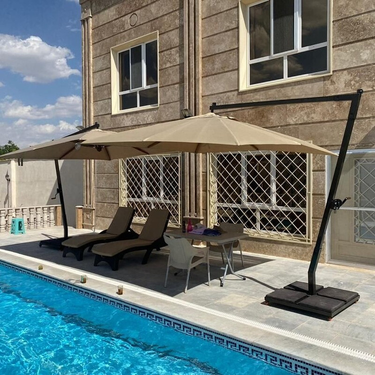 چتر نانو چراغدار 4 متری پایه بتنی مناسب تراس و روف و حیاط