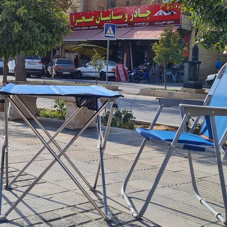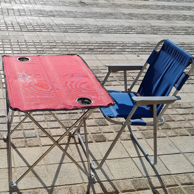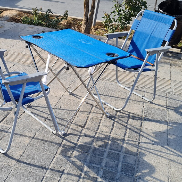 میز اسان بازشو با لوله استیل رویال وروکش ضد اب و قابل شستشو ومحکم و سبک و قابل حمل به همراه 2 عدد جالیوانی و کیف حمل