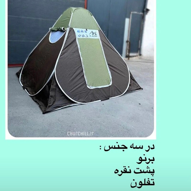 چادر 8 نفره برزنتی برنو با پارچه ضد اب درجه 1 و کفی ضخیم و فنرهای محکم و زیپ شماره 10 ضخیم با سه عدد پنجره و درب و توری