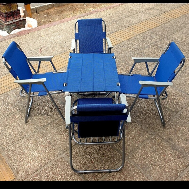 ست چهار نفره میز و صندلی فوم دار با مفتول زیر و نوار کف و پشت با دسته های محکم و جالیوانی دار