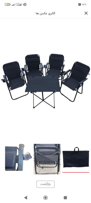 ست چهار نفره صندلی ساحلی تاشو 9 فنر و میز مسافرتی تاشو(پس کرایه)