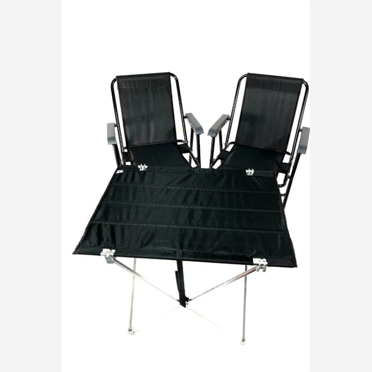 ست میز صندلی ساحلی تاشو مسافرتی دسته مبلی 2 نفره فوم دار 7 فنره دسته بسیار مقاوم با میز استراکچر تاشو و کاور دارپس کرایه