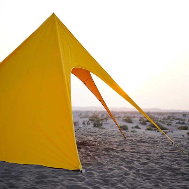 مینی استارتنت مدل ادونچر یک سایبان ستارهای کوچک، کم حجم و کاربردی با فضای سایه زیاد برای ۸ الی ۱۰ نفر است. این سایبان دارای عایق نسوز است و از آنجایی که پارچه آن ضدآب است علاوه بر استفاده در فصل تابستان به عنوان یک سایبان، میتوانید در فصل زمستان در هوای بارانی و برفی زیر آن از بخاری هیزمی استفاده کنید و دودکش آن را از قسمت عایق نسوز رد نمایید.به دلیل اینکه سه طرف این سایبان کاملا بسته است می توانید طرف بسته را رو به خورشید قرار دهید تا بیشترین فضای سایه را داشته باشید.جنس میخ های این سایبان از فولاد ck۴۵ است که مقاومت بالایی در برابر خم شدگی دارد و برای زمین های سنگلاخی و جنگلی مناسب است. چنانچه قصد استفاده از این سایبان، در ساحل یا کویر را دارید، باید میخ های مخصوص کویر را جداگانه خریداری کنید.
