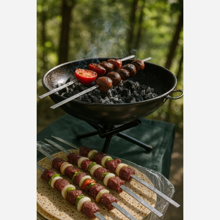ین محصول چند کاره به عنوان آتشدان، باربکیو و منقل قابل استفاده می باشد.علاوه بر امکان استفاده در حیاط، آلاچیق، روف گاردن و باغ، به علت سبکی و قابلیت باز بسته شدن فوری و حمل آسان، استفاده از آن در مسافرت و محیطهایی مانند ساحل جنگل و کویر و پیکنیک بسیار آسان وبدون دردسر می باشد.این آتشدان با پایه ارتفاع 44 سانتیمتر این امکان را به شما می دهد تا در سطوحی که به علت ناهمواری ، رطوبت و یا خطر ایجاد آتشسوزی امکان درست کردن آتش را ندارید نیز از آن استفاده کنید.به منظور طبخ غذا دو حالت مجزا امکانپذیر می باشد : در حالت اول با استفاده از سیخ برای طبخ کبابهای کلاسیک و سنتی و در حالت دوم با کمک توری باربکیو مخصوص موجود همراه کالا برای گریل انواع غذاهای دیگر مانند :استیک، بیفتک، سوسیس، برگرها، شنیسل گوشت، مرغ یا ماهی و سبزیجات مناسب می باشد.