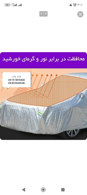 چادر نانو شمعی پارچه خارجی ریز بافت که مانع از نفوذ گرد و غبار به بدنه ماشین میشود